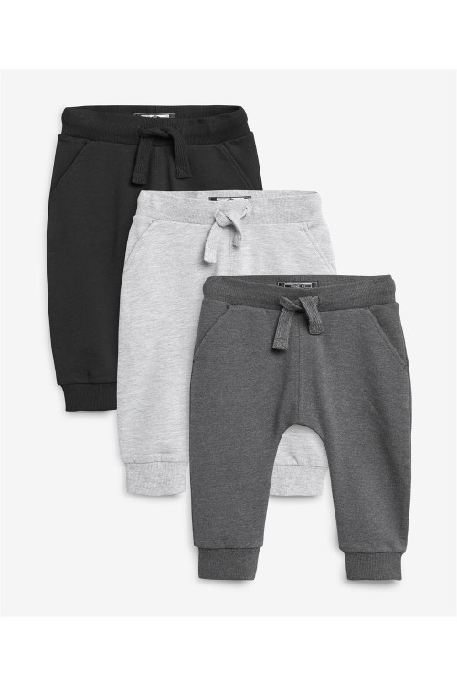 Осигурете си ежедневни удобства с този комплект от три панталона тип джогър в черно, светлосиво и тъмносиво. С еластична талия, връзки и ластични маншети, те са идеални за игра, почивка и ежедневно носене.