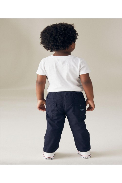 Тези лесни за носене и без усилие готини тъмносини панталони са идеални за вашето малко момче, изработени от чист памук с удобна подплата, еластична талия и практични джобове.