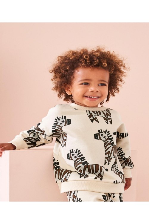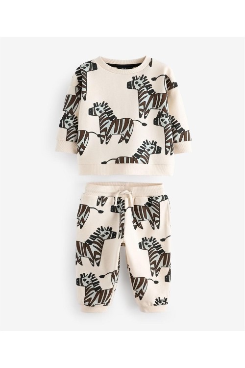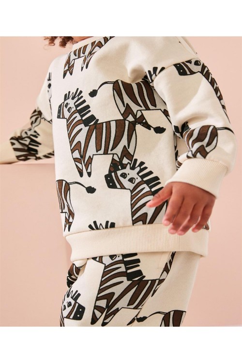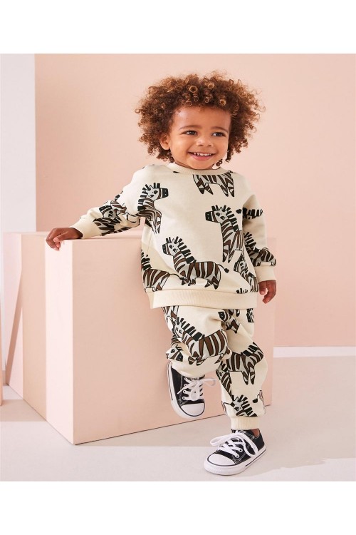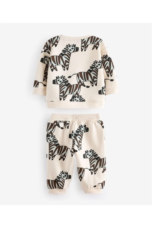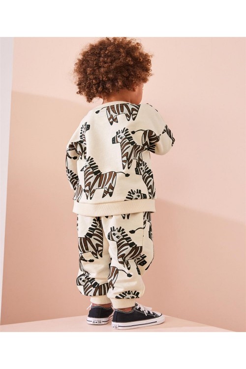 Добавете закачлив стил в гардероба на вашето дете с този екип с щампа на зебри. Включва удобна блуза и съчетан панталон тип джогър с весели десени на зебри. Мек, комфортен и идеален за ежедневни приключения.