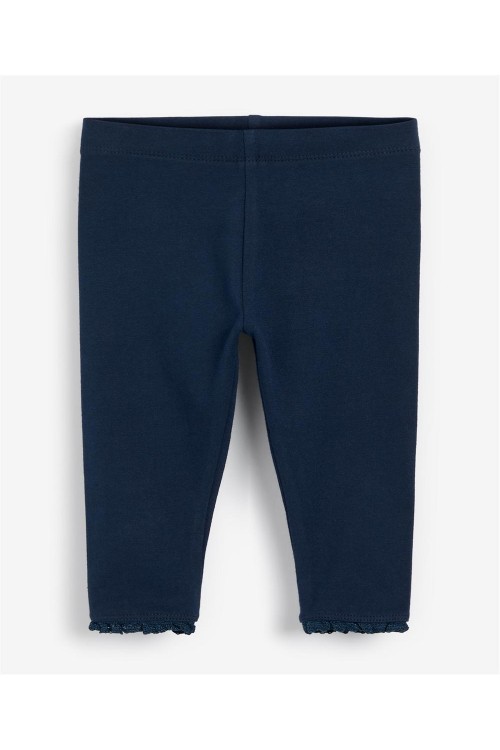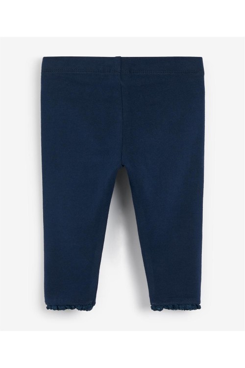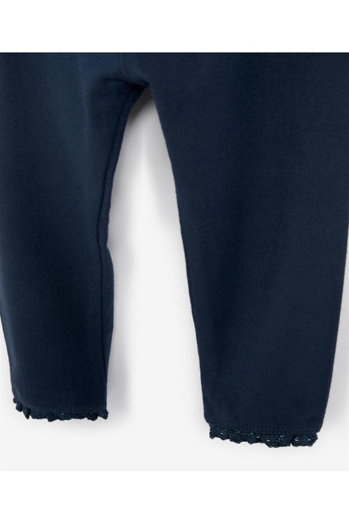 Класическите ни клинове в тъмносиньо, завършени с дантела, са задължителен елемент от гардероба. Изработени от памучна смес с добавена еластичност, тези клинове са удобни за носене. Идеални за ежедневната визия на детето ви. Може да се пере в пералня.