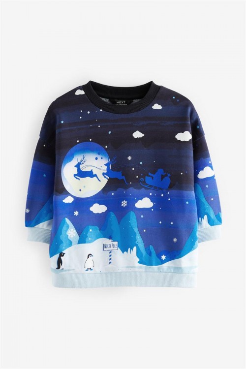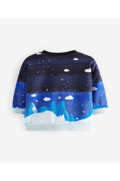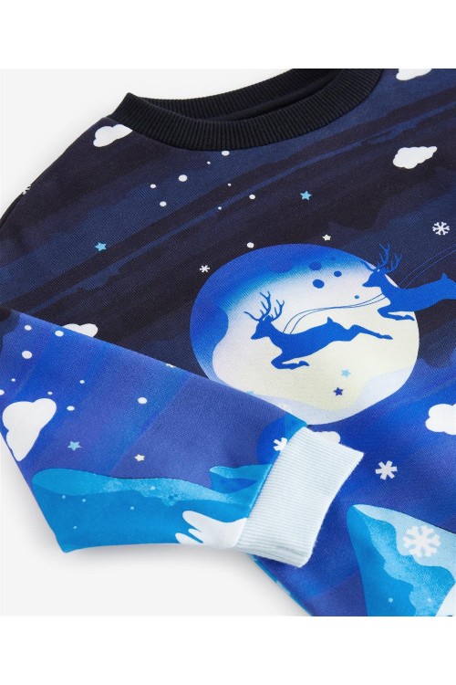 Изработен от чист памук, този уютен тъмносин суитшърт е с коледен принт с елени, завършен с обло деколте