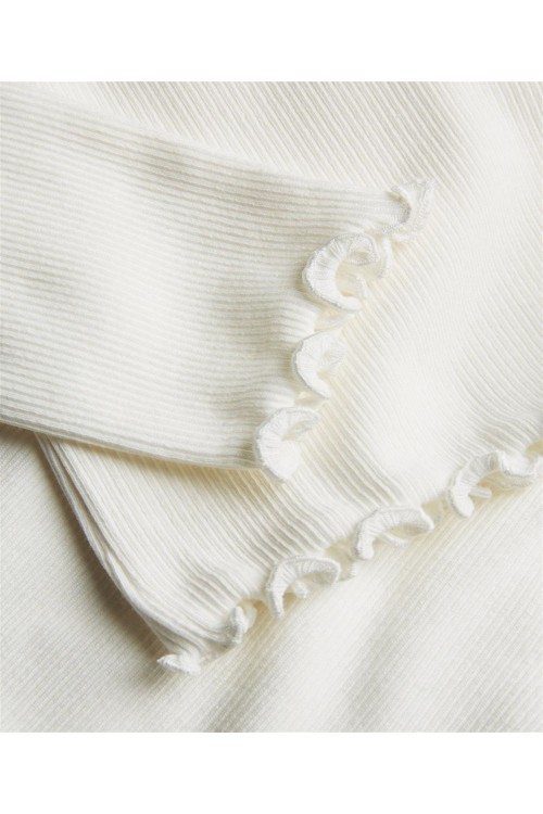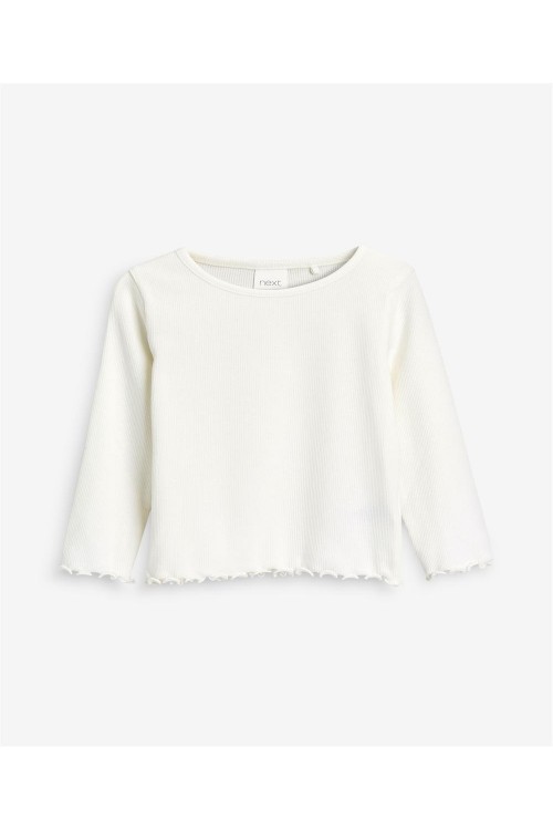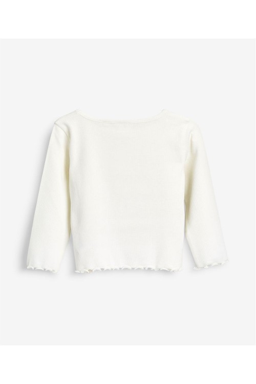 Погрижете се за стилния облик на вашите малки госпожици с тази еластична рипс блуза с дълъг ръкав в нежния цвят екрю. Детайлите с къдрички и елегантната овална яка придават завършеност и чар на облеклото.