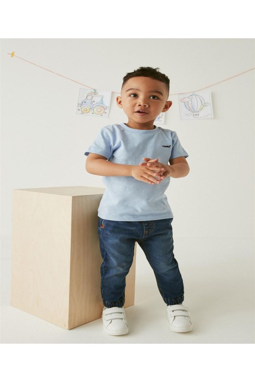 Осигурете удобство и стил на вашето дете с тези дънкови панталони тип джогър. С еластична талия, връзки и странични джобове, те са идеални за ежедневие и игри.