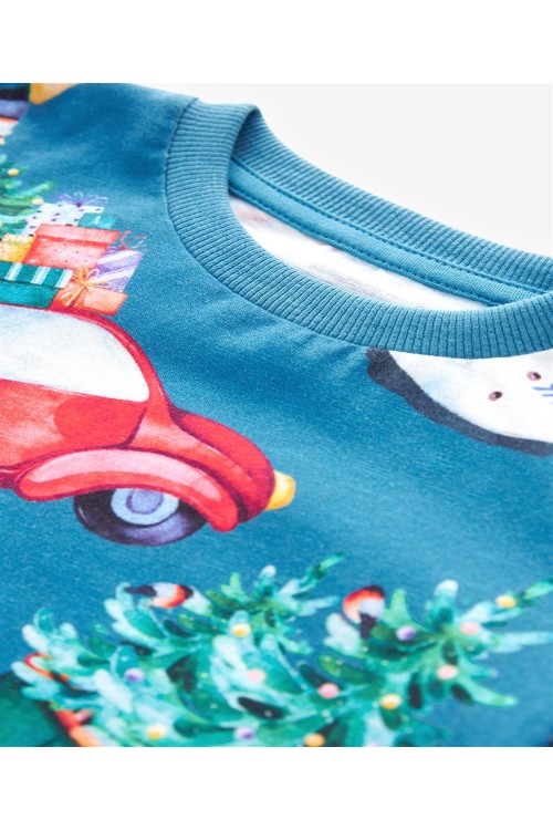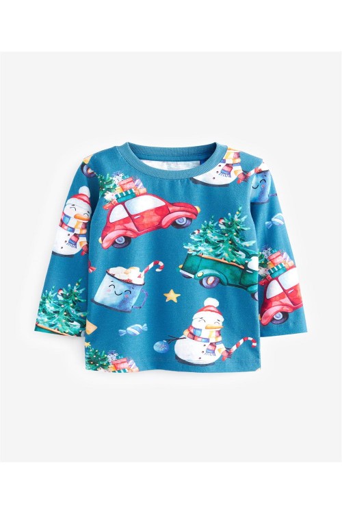 Празнична блуза с красив коледен принт. Обло деколте и дълги ръкави. Чудесно предложение за завършен празничен тоалет.