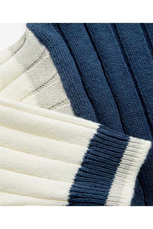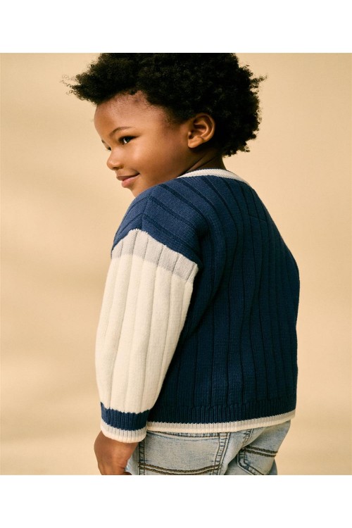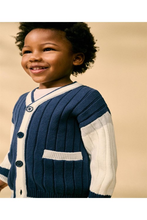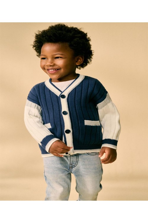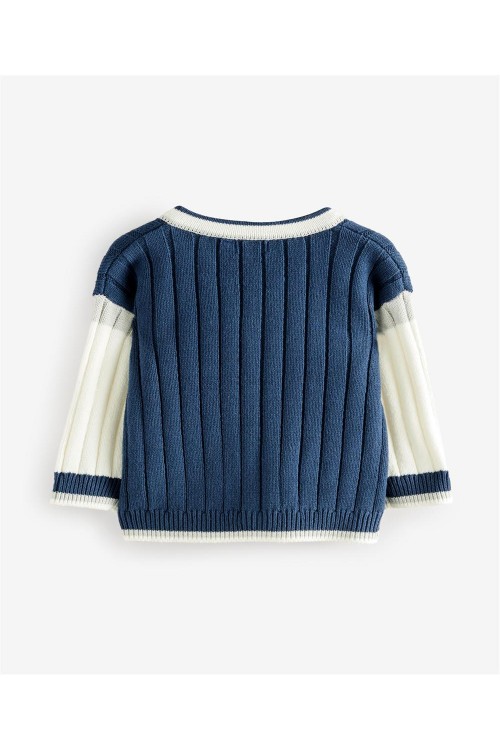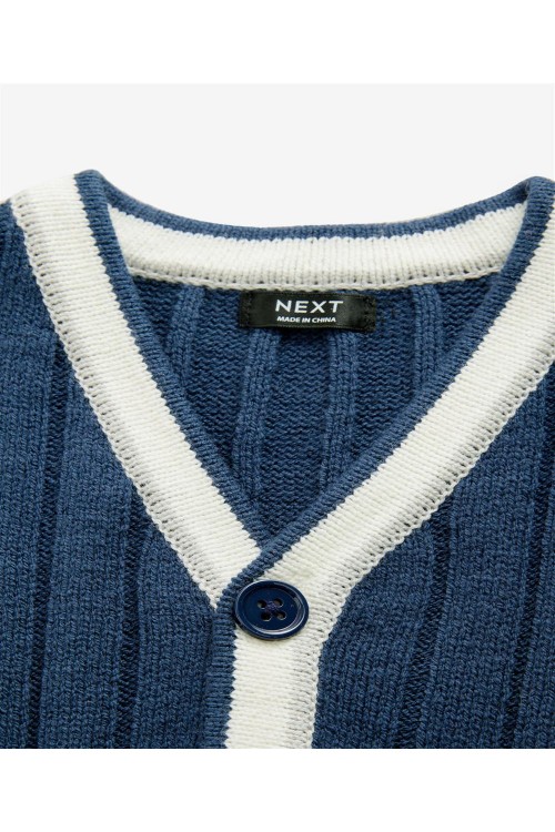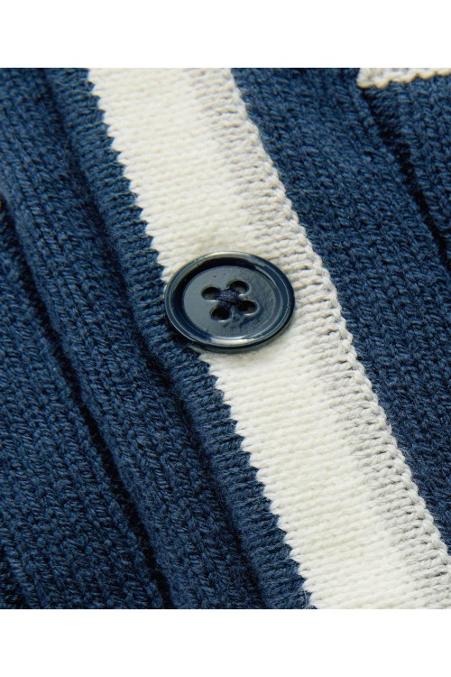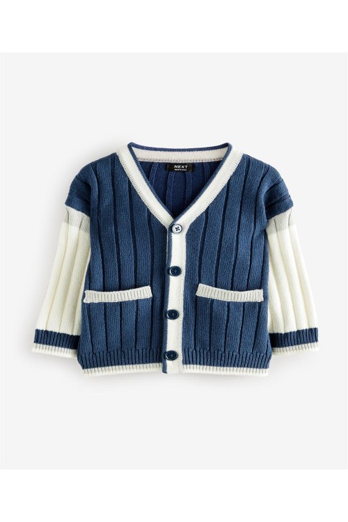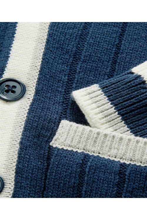 Добавете стил в гардероба с този синьо-бял плетен кардиган. С копчета отпред, релефна плетка и практични джобове, той е уютна и елегантна връхна дреха за всякакви поводи.