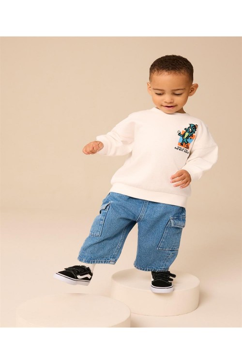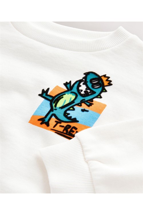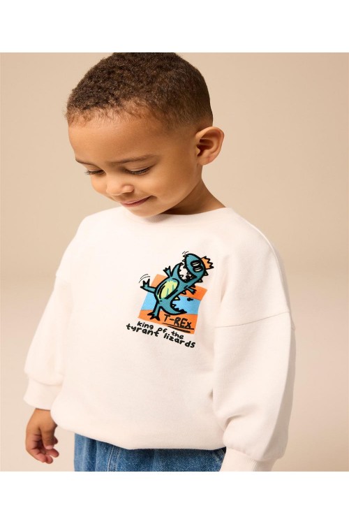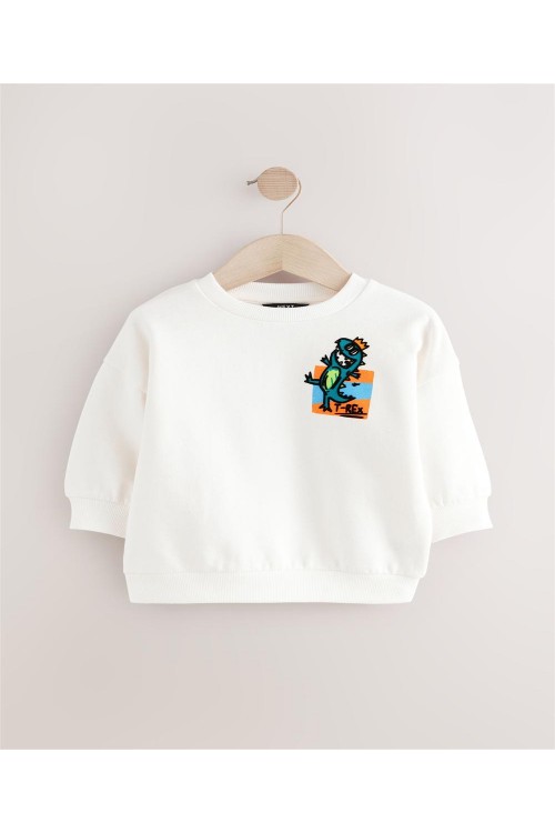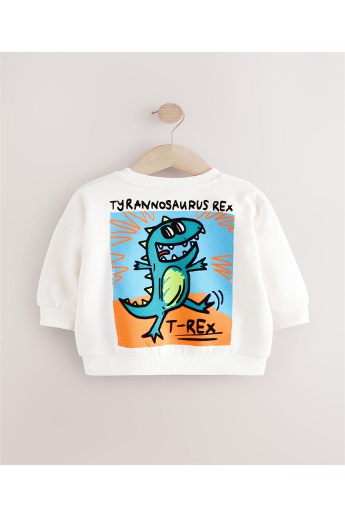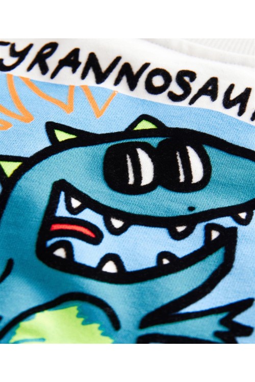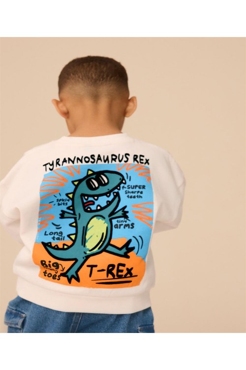 Добавете малко забавление към гардероба им с този бял суитшърт от чист памук, с ярък принт на динозаври на гърдите и гърба.