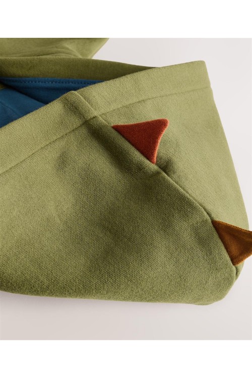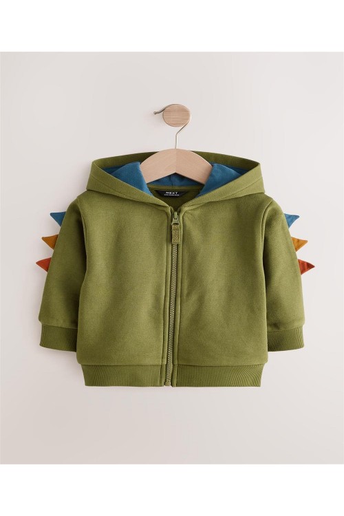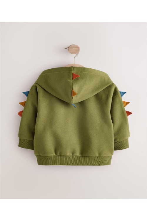 Добавете малко забавление към ежедневието им с този богат на памук суитшърт със зелена качулка, включващ закопчаване с цип и 3D детайли с шипове на динозавър,