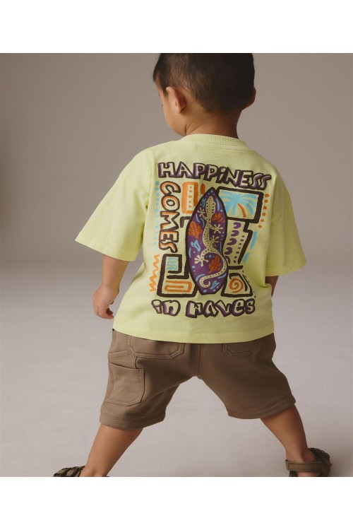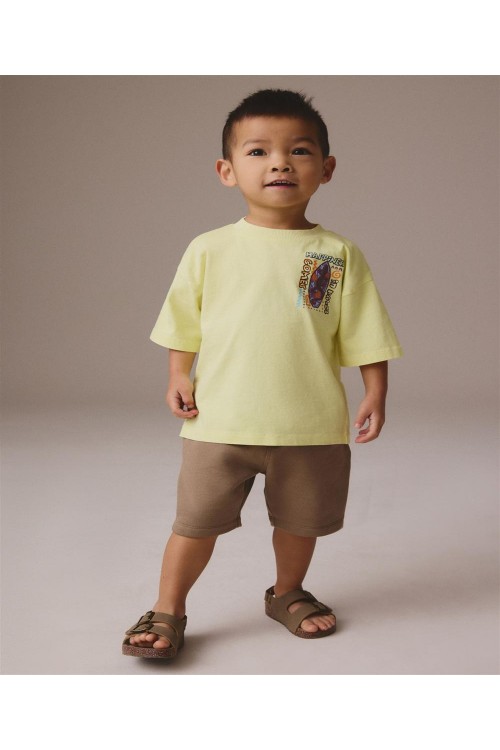 Добавете този комплект към летния гардероб на вашето дете. Изработен от чист памук, това стилно дуо включва тениска с къс ръкав със забавен принт и къси панталони с джобове