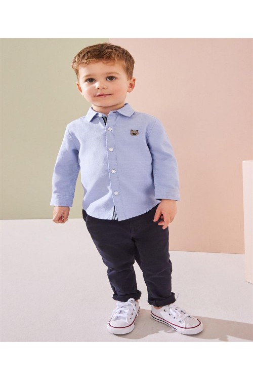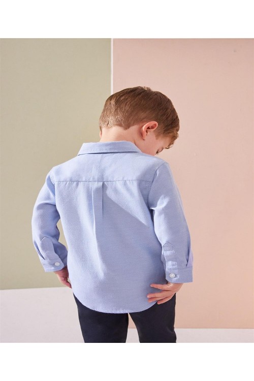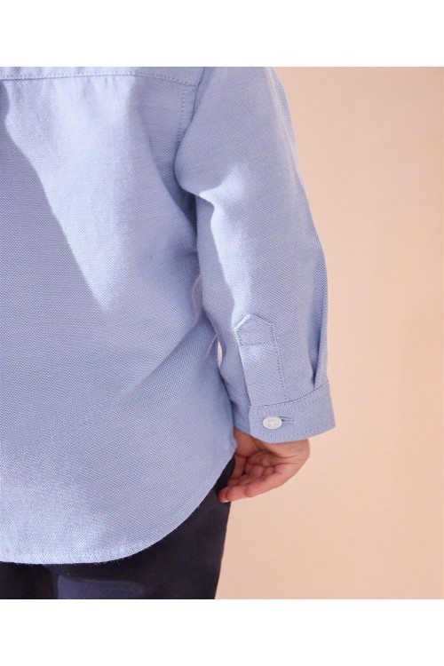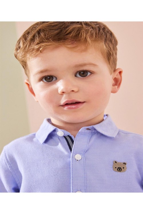 Тази момчешка оксфордска риза е изработена от богата на памук смес и еластан за комфорт. Закопчаването с копчета води до елегантна яка, завършена с бродирано лого на гърдите.