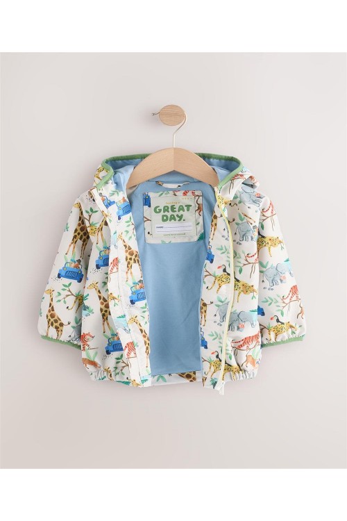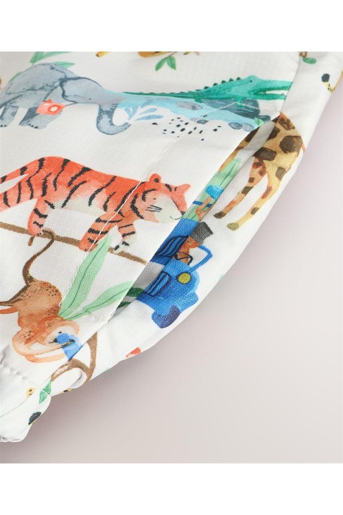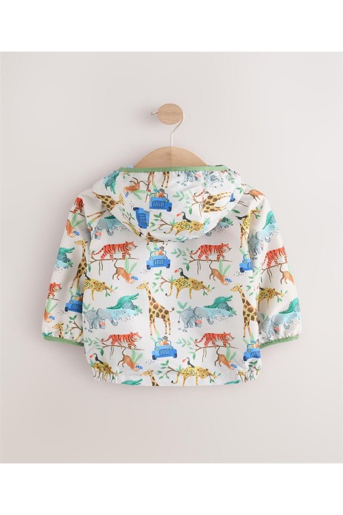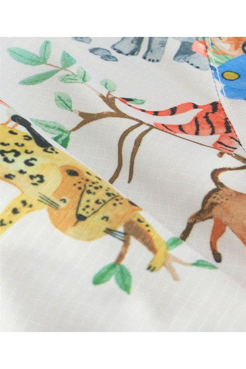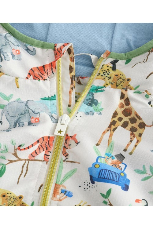 Идеално за непредсказуемо време, това водоустойчиво и леко яке е лесно за опаковане за приключения, с неутрален сафари принт по цялата повърхност, мека подплата от трико с вградена качулка, странични джобове и еластични подгъви.