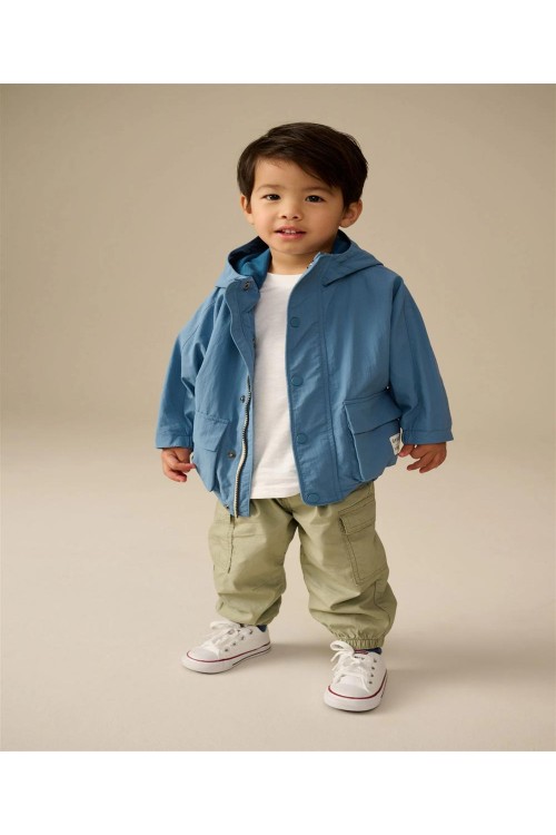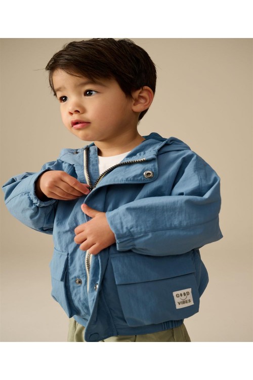 Това модерно яке има външна обвивка, устойчива на дъжд, която помага да се запази сухо, в оверсайз форма от издръжлива и лека рипстоп материя. Якето се закопчава с цип и тик-так копчета, с качулка и джобове, завършени с удобна подплата.