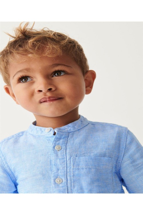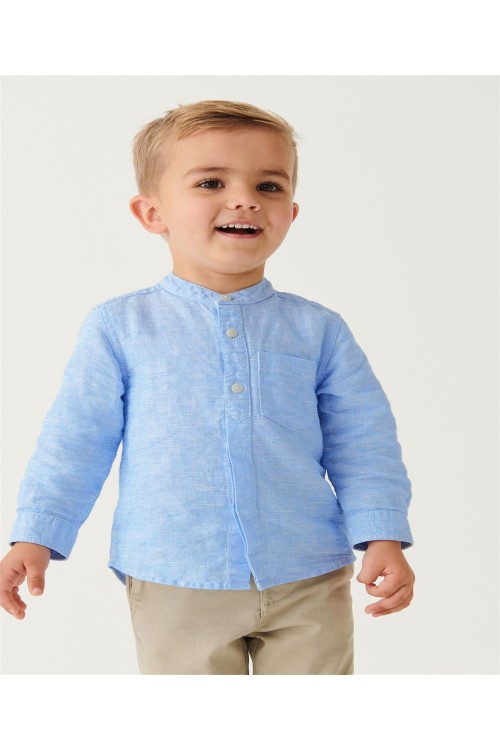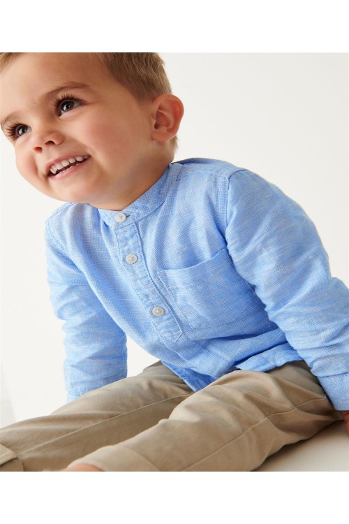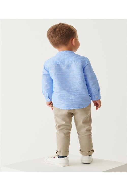 Представяме ви нашата елегантна и стилна риза с дълъг ръкав от ленена смес в синьо, която е идеалният избор за техния целогодишен гардероб. Изработена от комбинация от естествен лен и памук, тази елегантна риза е лека и удобна през целия ден. Яката придава допълнителен стил на този артикул, което прави ризата идеална както за по-елегантни поводи, така и за ежедневно носене. Може да се пере в пералня.